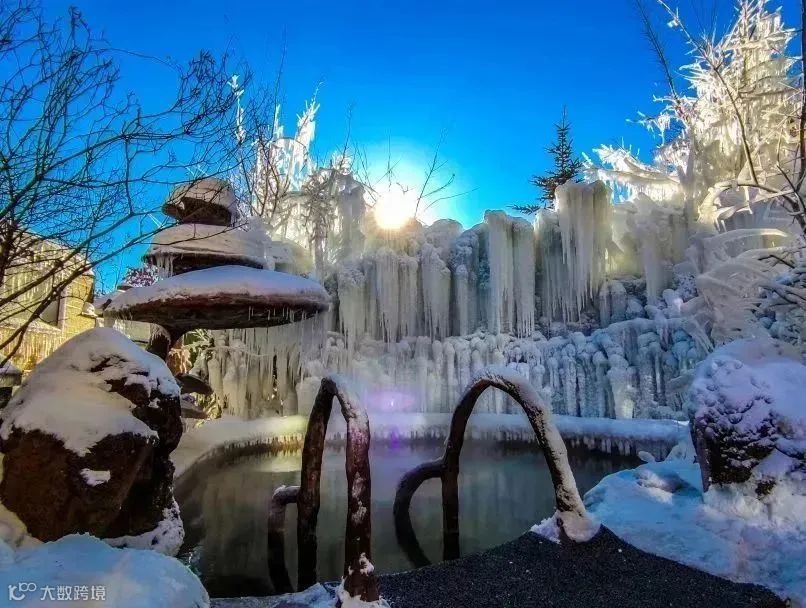 室外温泉泡池拥有超美的冰瀑景致