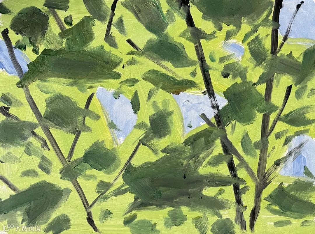 在其最新的作品中,光与影的斑驳关系进一步趋向抽象,在形象与背景之间自由游移。富有力量的色块传达出初夏的明亮与生机,而急促跳动的白色笔触则唤起寒雪纷飞的瞬间感受。每一幅画面都仿佛宏大叙事中的片段,引领观者进入艺术家与自然之间持续而深刻的对话,也重新思考“观看”本身所蕴含的意义。
