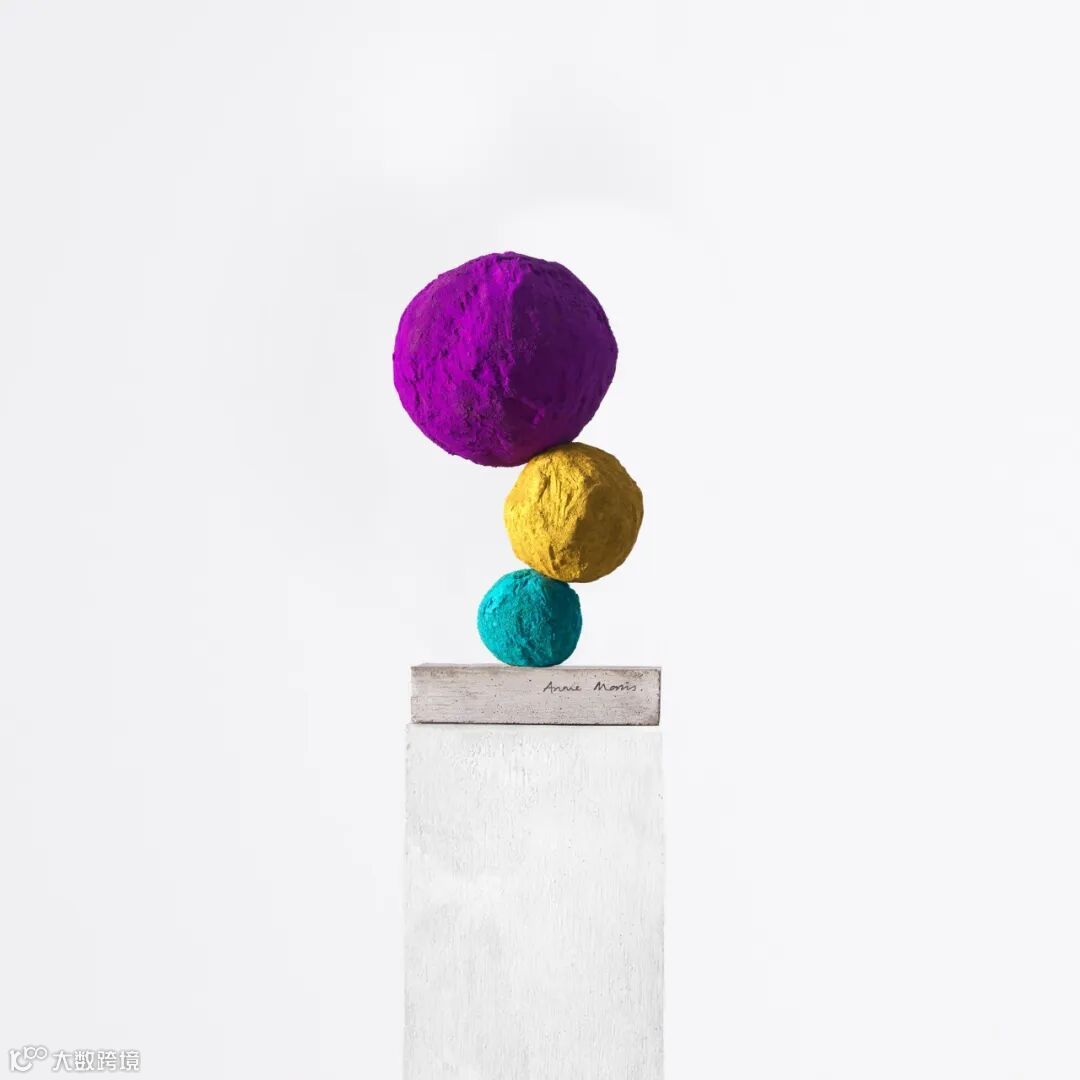 安妮·莫里斯(Annie Morris)将带来两件小型“堆叠”系列雕塑作品(Stacks, 2025 / 2026),作品呈现出明快且饱和的色调。这些由不同球体组成的图腾式组合,试图引起观者对于人体姿态的情感共鸣:一件作品中,球体彼此支撑、姿态轻盈;另一件则呈现出更为不稳定的上重下轻结构。与雕塑相呼应的是莫里斯的挂毯作品《紫色风景》(Purple Landscape, 2021)。艺术家以针线在织物上重新“书写”其自动绘画,以多样刺绣技法模拟手势性的绘画痕迹。艺术家通过多样的缝纫技法,用针线在画布上悉心重现了其色彩明艳的“自动书写”绘画,以针代笔,捕捉并模拟了手势性笔触的动态效果。