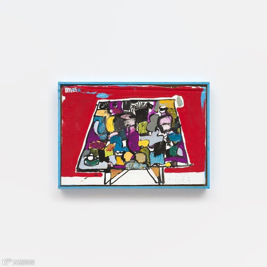 艾迪·马丁内斯(Eddie Martinez)的五幅小尺幅绘画也将亮相展位,延续其层叠、丰沛的视觉语言。画面中常见的蝴蝶、花朵、桌面与抽象人物等元素源自艺术家对日常速写的不断提炼与重组。