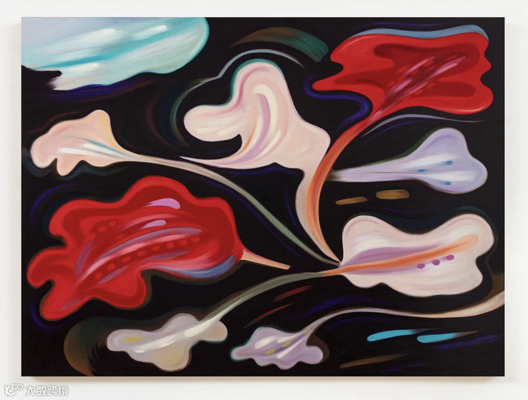 其他亮点作品亦精彩纷呈:贾布·普拉查库(Jiab Prachakul)的首件雕塑作品,一尊陷入沉思的青铜坐像,其叙事深度与非凡细节延续了她绘画中的独特质感;奥纳·泰特斯(Honor Titus)的新作《慰藉时刻》(Cy of Relief,2025)延续了艺术家对青春、社会与女性气质的探索,以精致且带有象征主义意味的具象风格呈现;希拉里·佩西斯(Hilary Pecis)的《平面档案》(Flat File,2025)以充满活力的图案构筑静物场景,为观者呈现了一个色彩斑斓、充满生活痕迹的私密空间;而在哈雅尔·波赞蒂(Hayal Pozanti)的两幅新作中,富有表现力的生物形态在幽暗背景上仿佛轻轻振动,为展位注入一种富于节奏与能量的诗意张力。