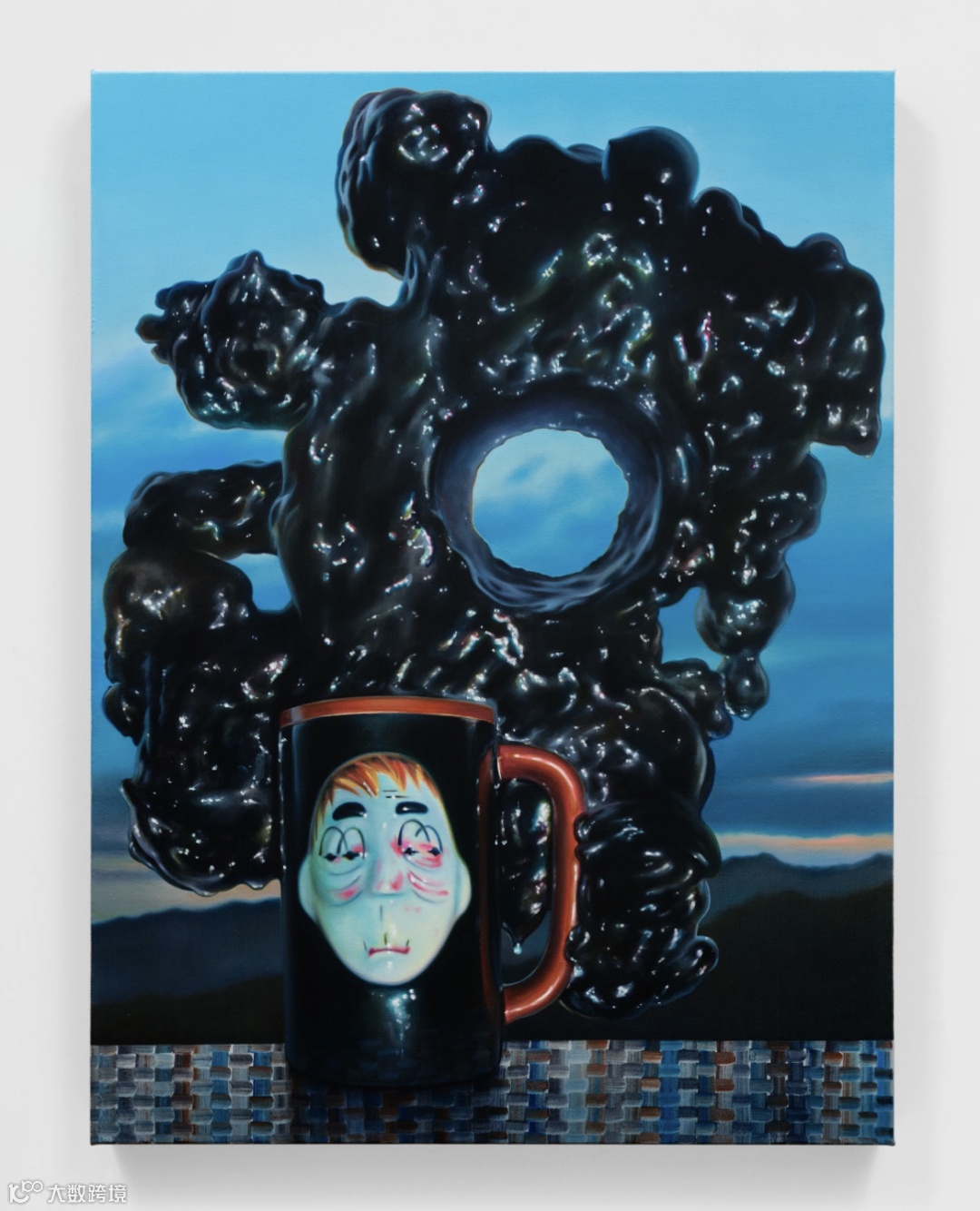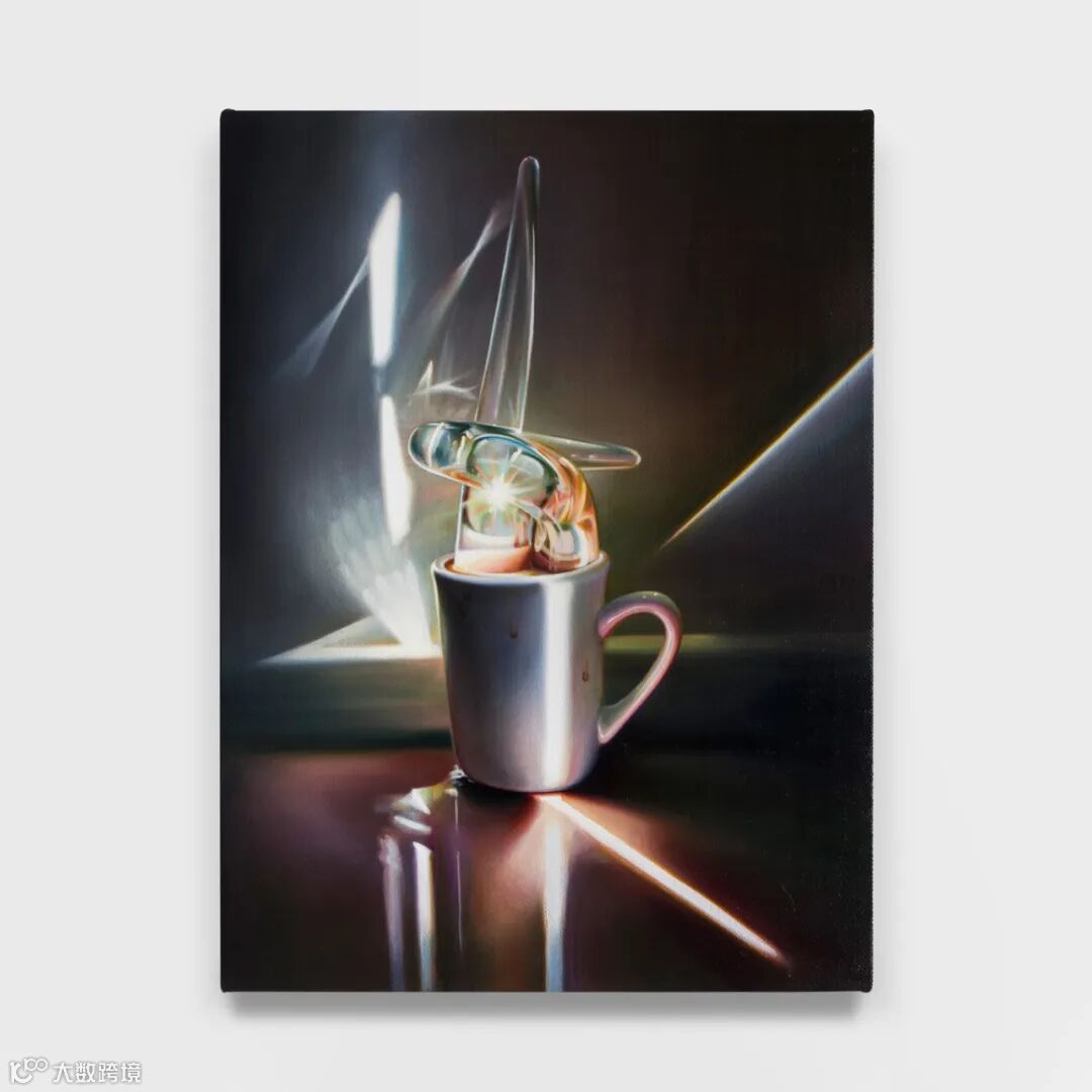在萨特洛夫斯基那些怪诞猎奇又构思精妙的绘画中,或熟悉或陌生的错位物件被安置在暮色笼罩的风景或暧昧不明的室内中。空灵而折射的光线,唤起一种关于身体异化与心理疏离之感。她将自身的创作方法比类比为美术指导,以物件为道具,服务于更宏大的叙事,并邀请观者自由联想。她的创作流程极为耗时,将日常材料升华,赋予那些一次性用品与小摆件近乎神圣的气息。画作细节鲜明生动,可以看见玻璃罐与小雕像的体积与光泽被描绘得仿佛“浮”在画布之上。她借用照相现实主义手法的直观性,在可辨识与抽象之间,创造出闪烁不定的视觉意象。