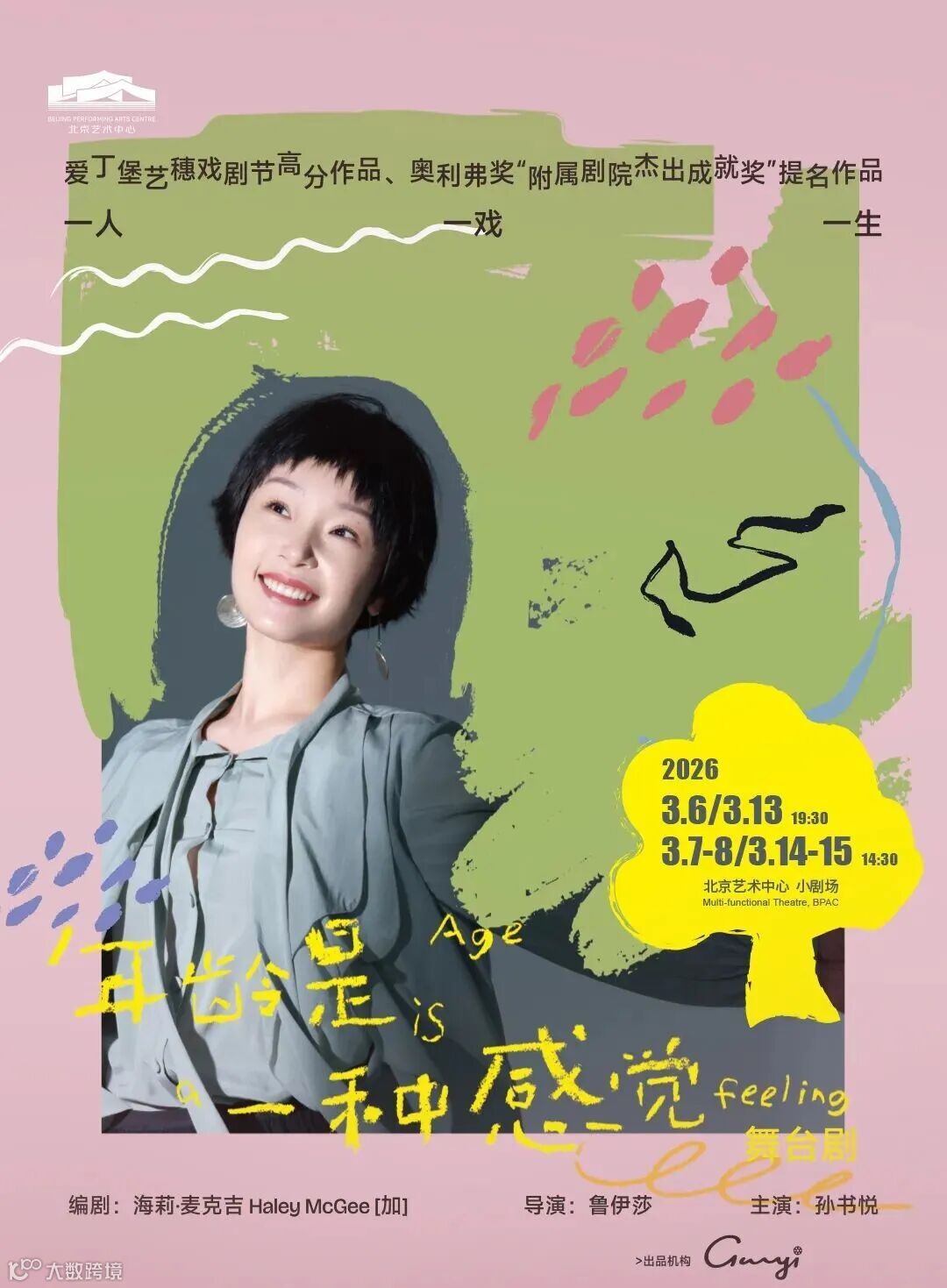 小剧场单人话剧《年龄是一种感觉》由作家兼演员海莉·麦克吉(Haley McGee)创作。2022年在英国伦敦苏活剧场首演,在2023年获得奥利弗奖的提名,剧中讲述了一位女性从25岁到生命终结的故事。