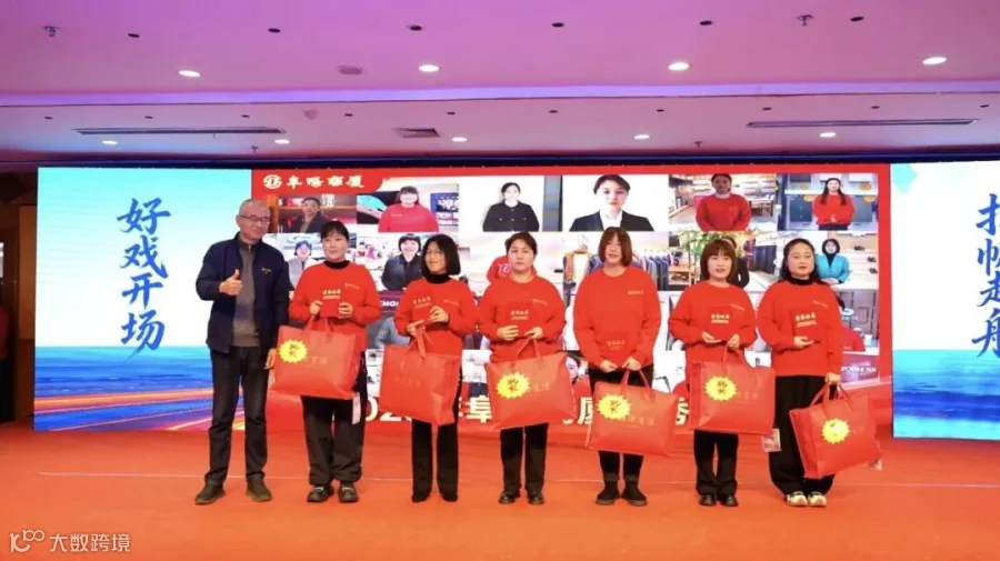 近日,阜阳商厦2026欢聚年“凝众筑船 向海争流”暨2025年工作总结及表彰大会隆重举行。来自各战区、部门、楼层、柜组及品牌的300余名员工代表齐聚一堂,共同回顾奋斗历程,表彰先进典型,擘画发展新篇。