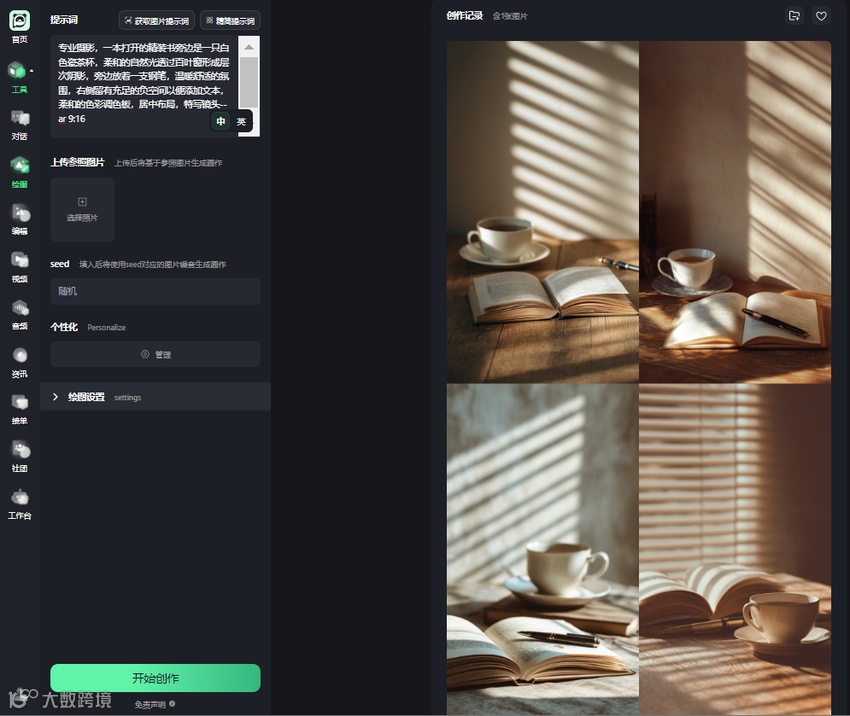 客户说 “有书香气息”,拆解成 “木质书桌 + 摊开的精装书 + 白瓷茶杯 + 百叶窗光影 + 暖色调”;