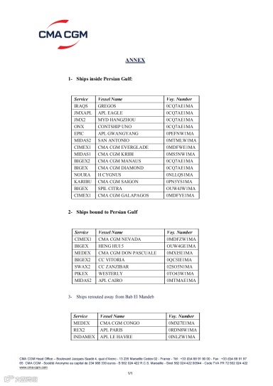 达飞集团(CMA CGM)宣布:所有驶往波斯湾的船只已指令即刻前往安全水域;苏伊士运河通行暂停,船只将改道好望角。
