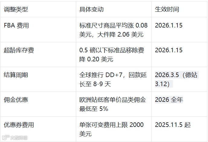 费用与回款:核心调整对照表(卖家必备)