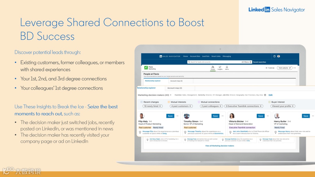 将行业海关数据客户名单批量导入Sales Navigator后,系统将对目标公司进行持续监控:一旦客户在领英活跃、高管变动或组织架构调整,平台即刻触发预警。