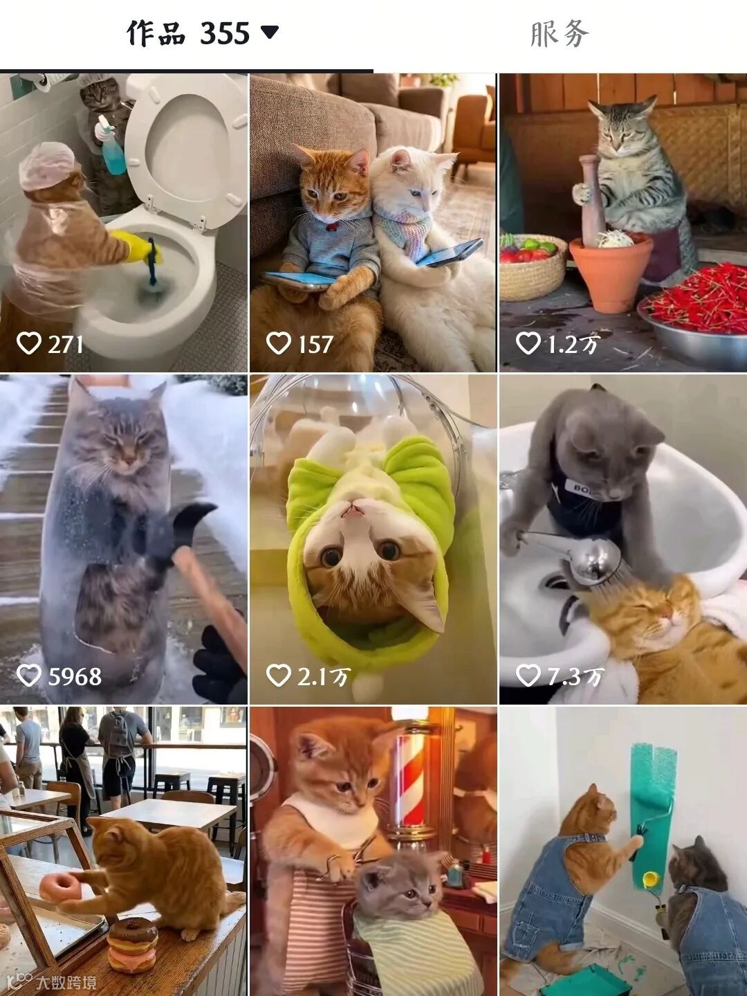 萌宠内容自带 “天然好感滤镜”,观众愿意为可爱买单。账号全是猫咪互动、拟人化生活场景,单条最高 7.3 万点赞,受众认可度极高。
