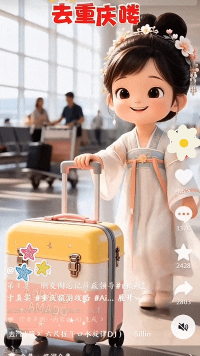 以 “古风 AI 小人重庆游玩” 的视频为例,用可爱的 AI 形式还原打工人的各类经历,真实又有代入感。