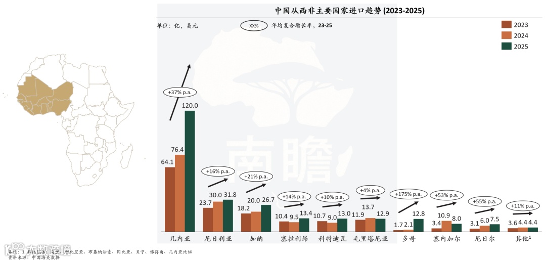 中国从西非主要国家进口趋势(2023–2025)