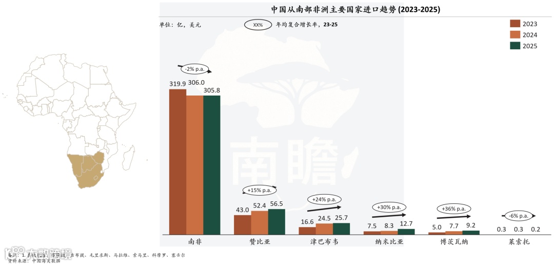 中国从南部非洲主要国家进口趋势(2023–2025)
