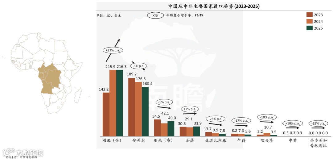 中国从中非主要国家进口趋势(2023–2025)