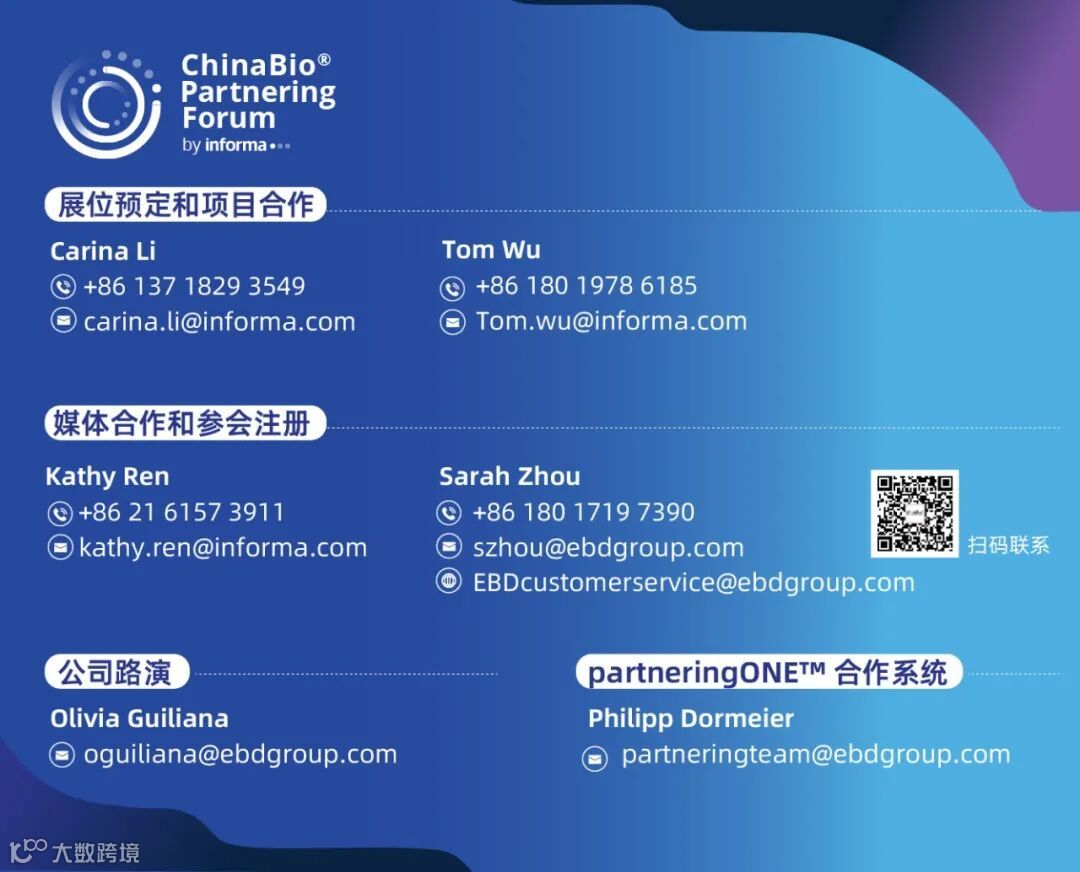 ChinaBioTM Partnering Forum 由Informa集团主办,是聚焦生物医药产业国际合作的权威盛会,自2009年落地中国以来已连续举办17届。作为Bio系列大会在中国的旗舰站,大会致力于推动全球生命科学资源与中国快速增长市场的深度对接。