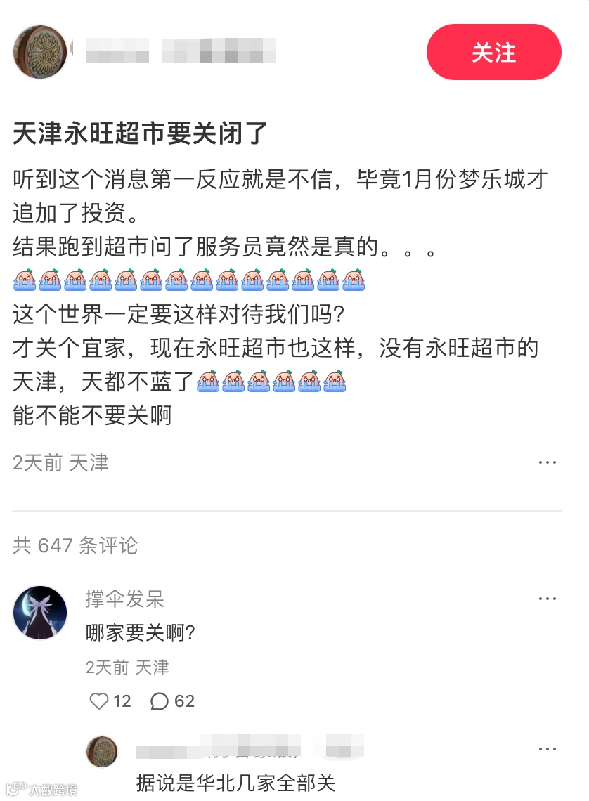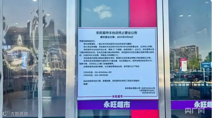 尽管否认“全面撤出”,永旺在华北市场的收缩已有明确迹象。2025年4月16日,永旺北京丰台店发布终止营业公告,5月16日起正式关闭——此举标志着北京最后一家永旺超市退出市场。