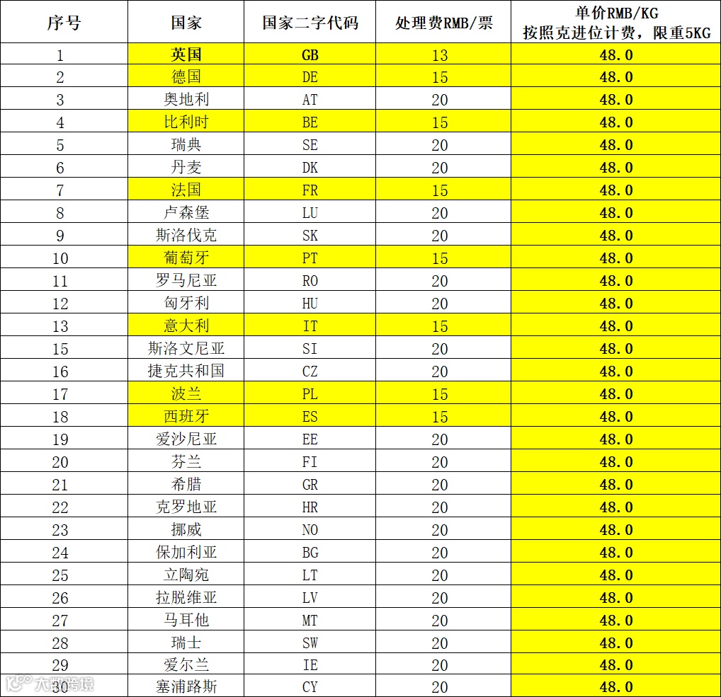 注意:欧盟国家含税;独联体国家存在二次清关及缴税要求,由收件人自行承担。