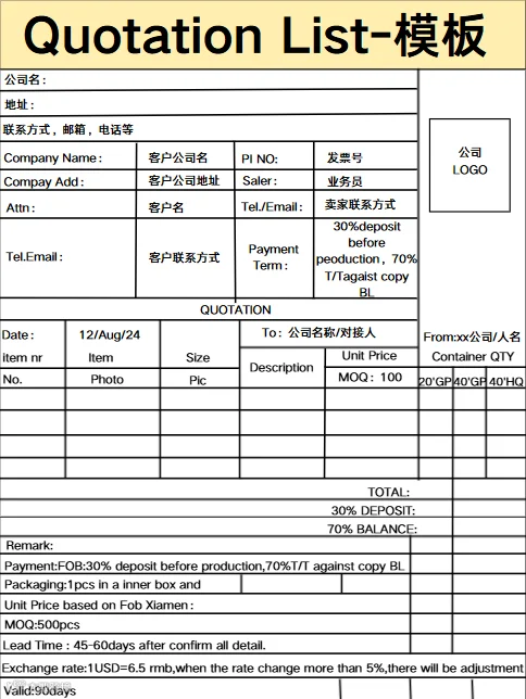 附件规范完整:报价单包含产品参数、包装、认证、付款方式、售后保障等核心要素,可补充 “若需优化方案,可随时沟通”,提升灵活性;