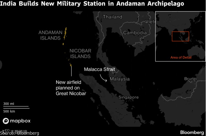 彭博社、《印度教徒报》2月27日报道,印度拟在安达曼-尼科巴群岛最南端的大尼科巴岛(Great Nicobar)建军事机场,旨在对华形成战略威慑。据悉,印内阁已批准价值1500亿卢比(15000 crore,约合16亿美元)的大尼科巴岛军事用机场建设项目,该项目由印度国防部牵头,预计三年后投入运营。同时,印还将延长升级群岛内另外两条现有军用机场跑道,以适配更大机型起降。安达曼-尼科巴群岛距马六甲海峡约40海里(40 nautical miles),把控着西太平洋经马六甲海峡进入印度洋的必经之地,全球约1/3的海运贸易及中国大部分能源进口均需经由马六甲海峡。与此同时,印正同步升级安达曼-尼科巴群岛军事装备,拟增购6架美制P-8I远程巡逻机,该机型未来均可从扩建后的机场起降。分析人士认为,印度此举旨在通过在此战略要地强化军事存在,抗衡中国在印度洋日益增长的影响力,提升监控与潜在控制关键航道的能力。这被视为印度增强自身在美日印澳“四方安全对话”(QUAD)机制下战略话语权的重要举措。