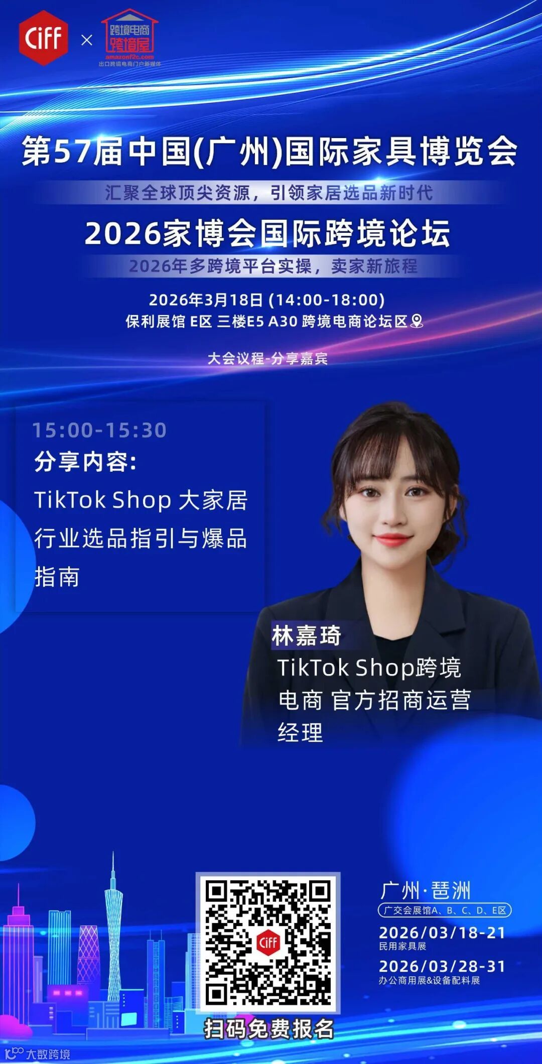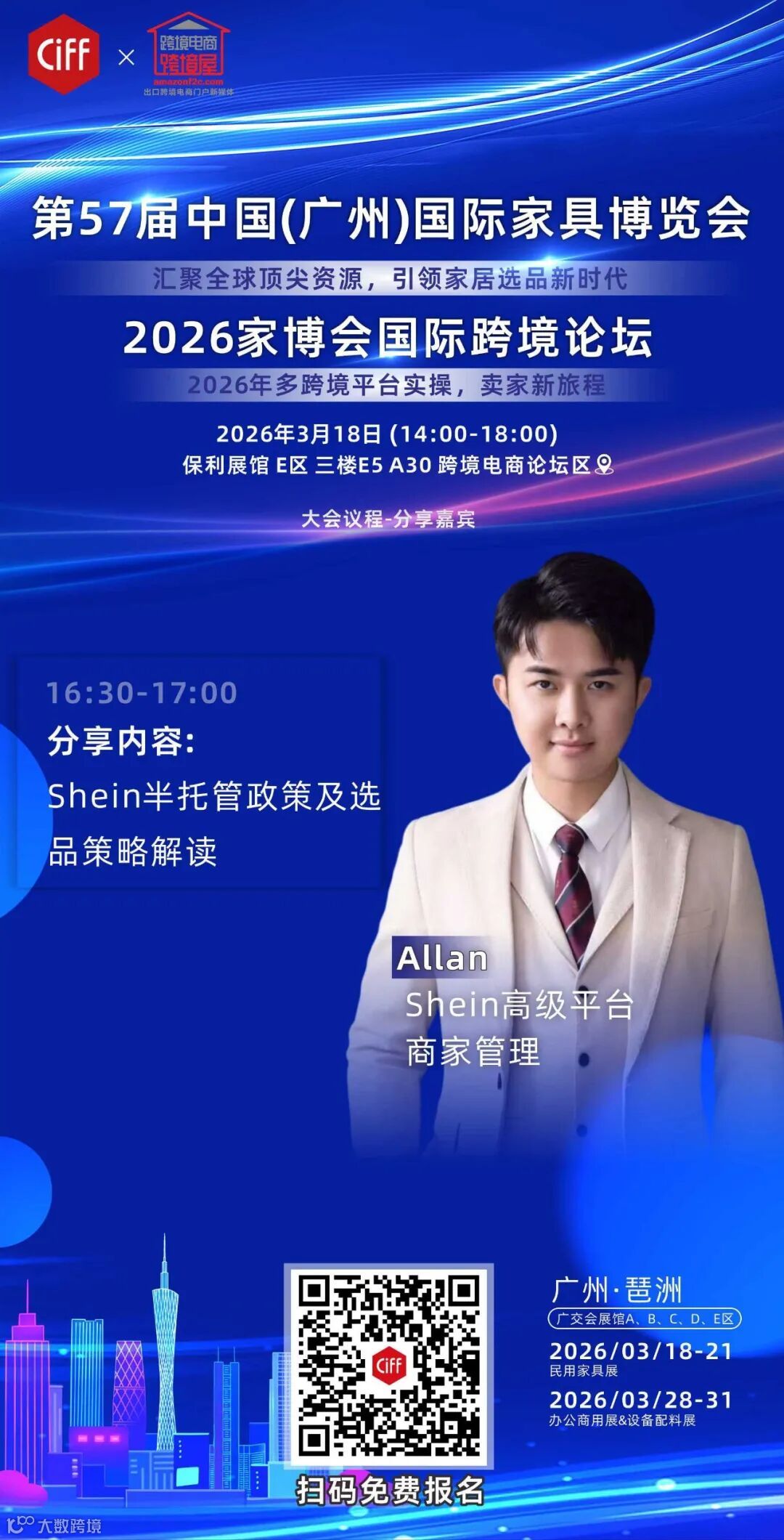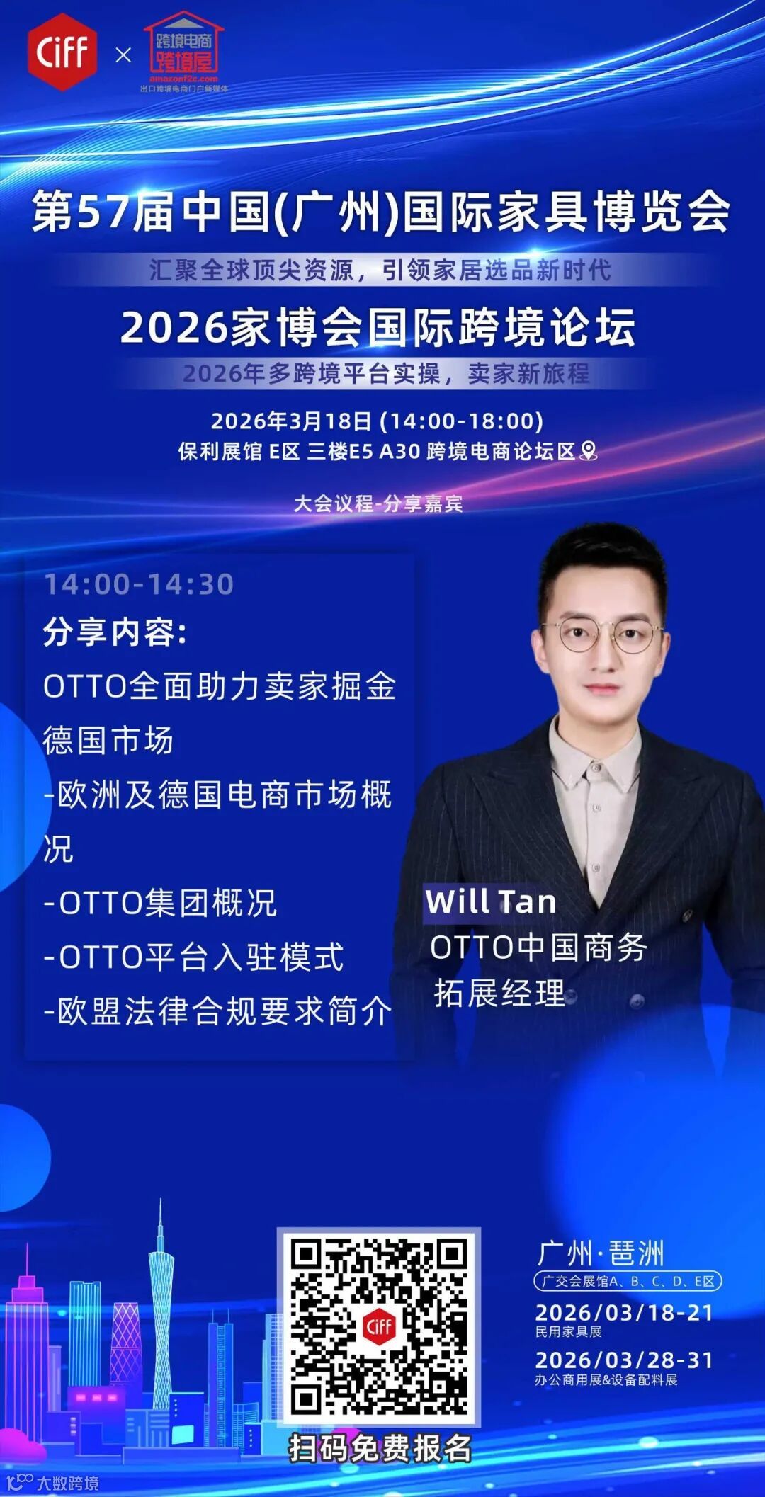 3月18号的家博会,国务院旗下广州交易会广告有限公司举办的CIFF,会现场跟大家聊聊,如何避开这些坑,走真正的“合规出海”之路。多个平台官方招商经理出席!OTTO,TK SHOP自营&托管,SHEIN,TEMU,SHOPEE等!