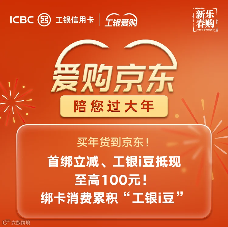 【爱购京东】首绑立减、满额立减、工银i豆最高抵现100元!