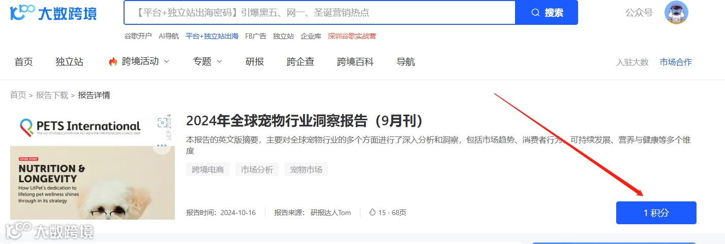 此外,“大数跨境”还推出了积分兑换系统,用户可以通过参与平台活动、分享报告等方式获取积分,用于兑换下载受限的研报。这一举措不仅激发了用户的参与热情,也进一步丰富了平台的报告资源。