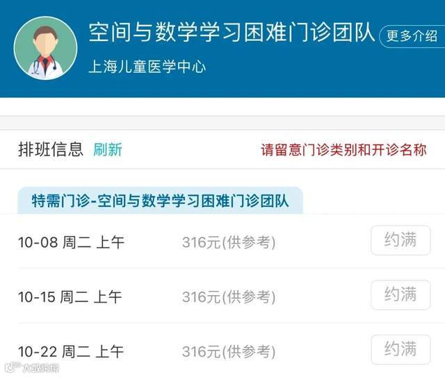 开放预约后,该门诊全部约满,有家长带着孩子专程从外地赶去就诊,而且挂号费并不便宜: