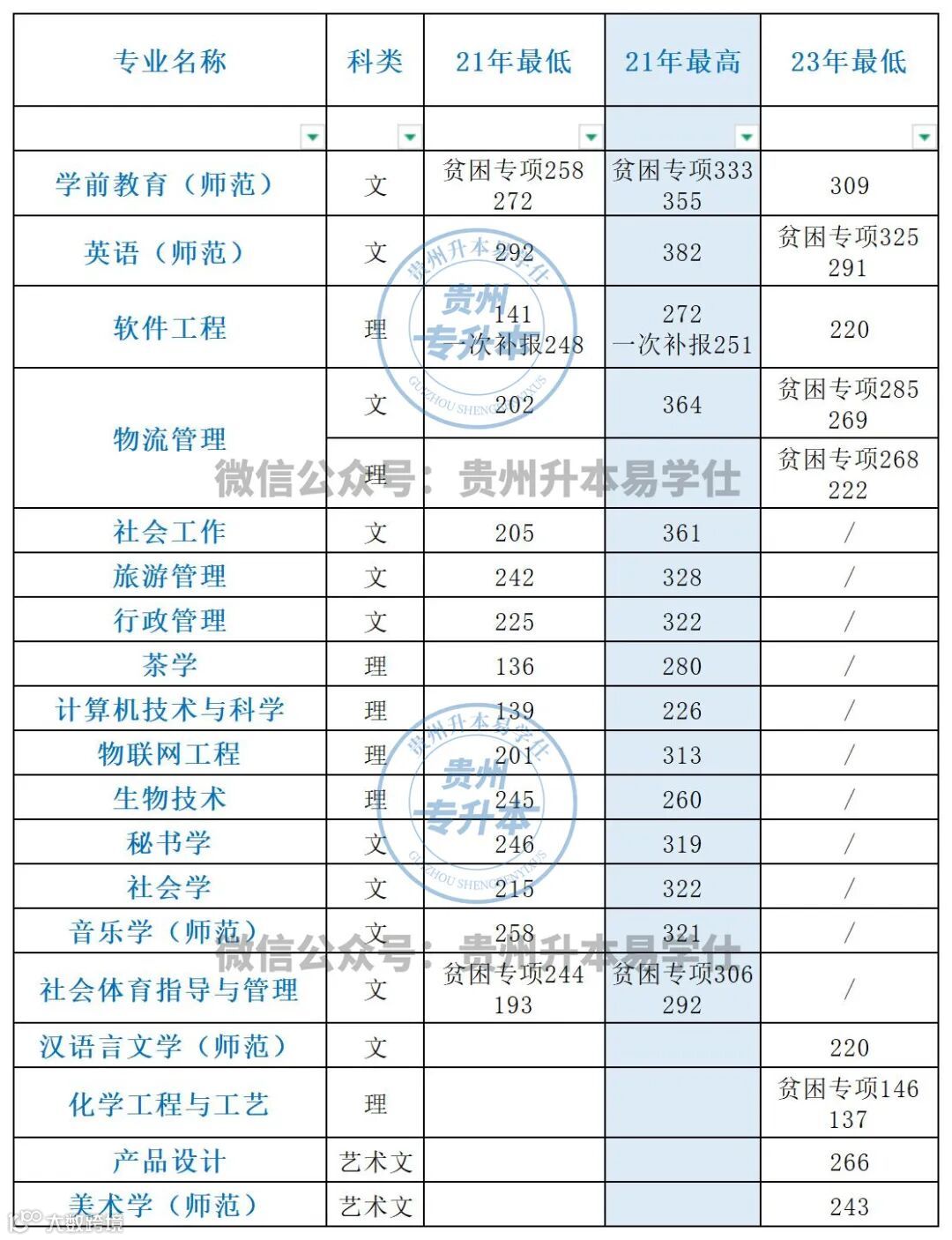 贵州专升本录取分数指的是大家的文化课成绩+专业课成绩之和,因为贵州专升本是根据大家文化课+专业课成绩之和,从高到低进行录取的。