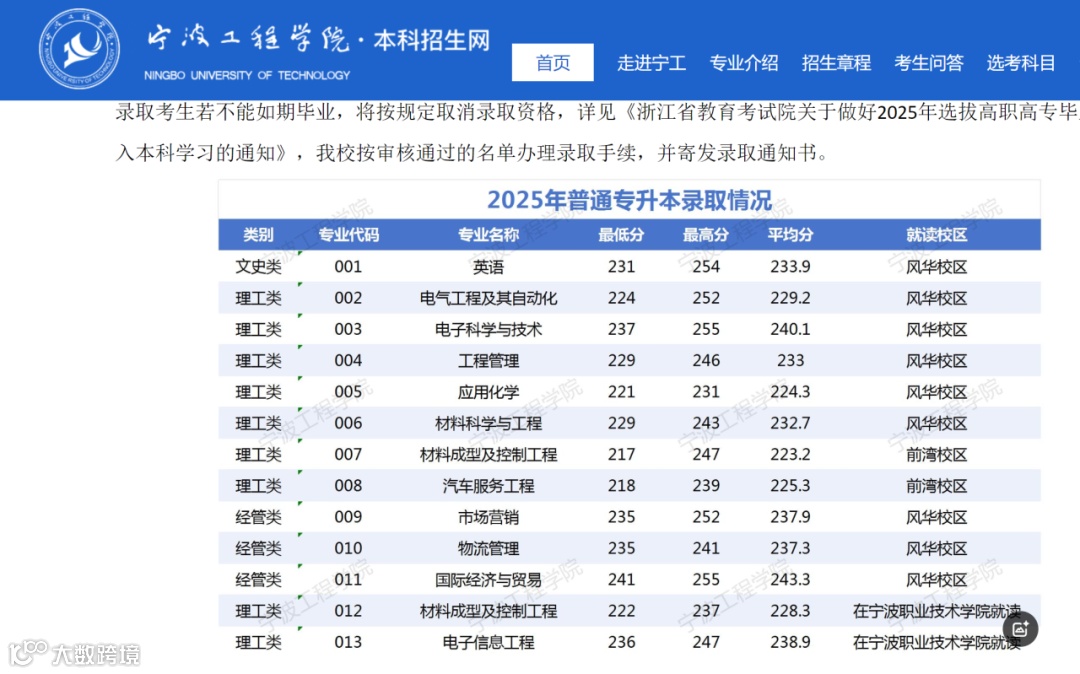 宁波大学科学技术学院2025年专升本录取分数线