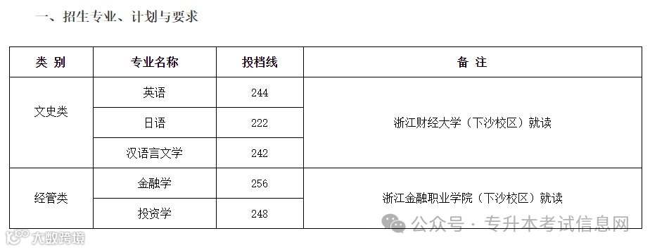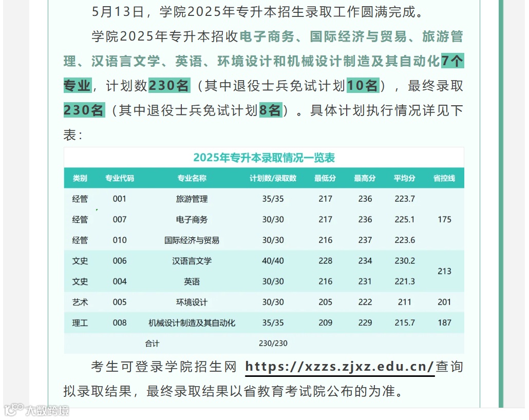 上海财经大学浙江学院2025年专升本录取分数线