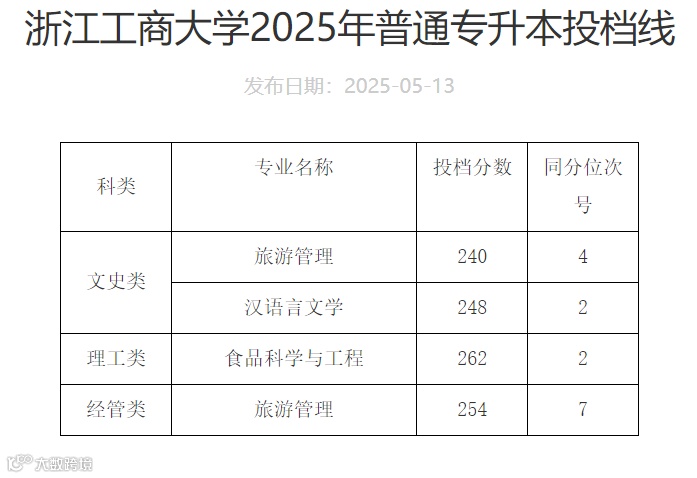 浙江工商大学2025年专升本录取分数线
