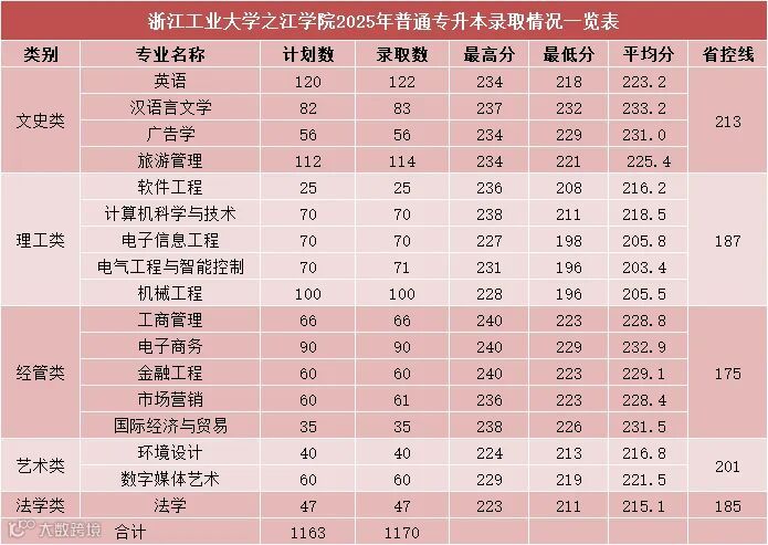 浙大城市学院2025年专升本录取分数线
