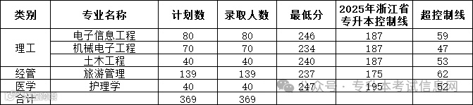 浙江水利水电学院2025年专升本录取分数线