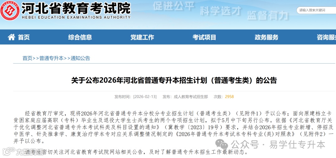 请考生密切关注河北省教育考试院网站相关公告,及时了解普通专升本招生工作最新动态。