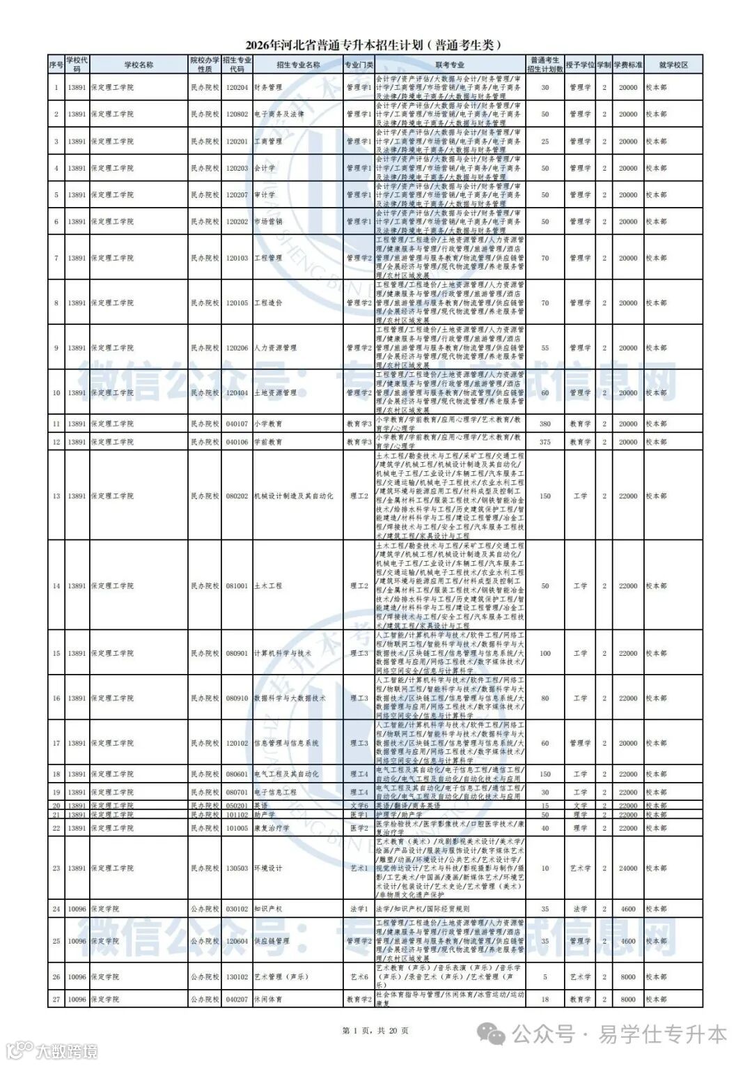 经省教育厅审定,现将2026年河北省普通专升本分校分专业招生计划(普通考生类)(见附件1)予以公布;面向原建档立卡贫困家庭应届高职(专科)毕业生及退役大学生士兵考生的两个专项招生计划,拟于5月中下旬另行公布。依据《河北省教育厅关于优化调整河北省普通专升本考试科类及科目设置的通知》(冀教学〔2023〕19号)要求,并结合2026年招生专业新增、停招及中医学、针灸推拿学、康复治疗学本专对应关系调整情况制定的《2026年普通专升本考试本专科专业(类)对照表》(见附件2)一并予以公布。