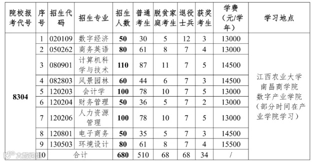 江西农业大学南昌商学院2026年专升本招生计划人数