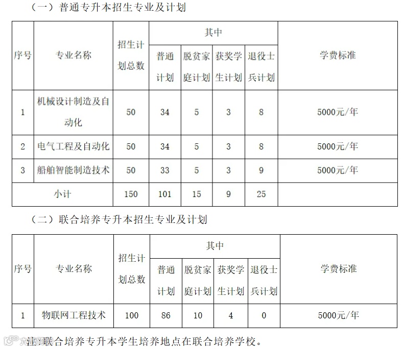 注:非联合培养专业培养地点为校本部;建筑学专业学制五年,专升本学习三年。