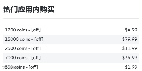 自应用上线以来,内购收入达到1.5万美元,占整体收入的50%。data.ai数据显示,Lage的内购均为购买coins(应用内货币),刚上线也给出了相应的折扣价。