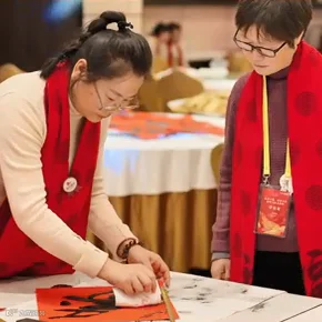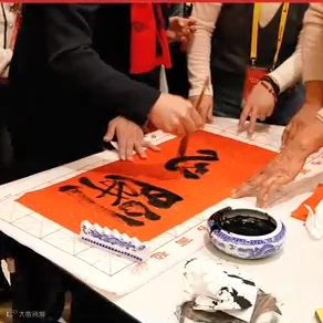 有人忙着铺纸,有人静待墨干,一幅福字的传递,让陌生的师生在传统文化的共鸣里,拉近了彼此的距离。围观的师生笑意融融,接过带着墨香的福字,让研学的旅程在传统文化的浸润里更添温情。