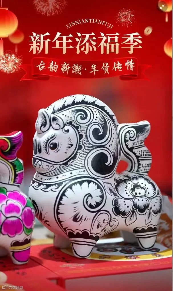 其造型取法秦人驰骋疆场的豪迈,既含仕途顺遂、步步高升的经典祈愿,更喻示当代人锐意进取、勇立潮头的时代追求;红漆雕纹沉稳大气,白底黑纹古朴雅致,黄土的灵性与匠人的心血凝于一体,成为马年最具文化厚度的祥瑞之物。它不仅是本次清明文化之旅最具分量的珍贵纪念,既是对周秦文明的致敬,也寄托岁岁安康、马到成功的美好祝福。