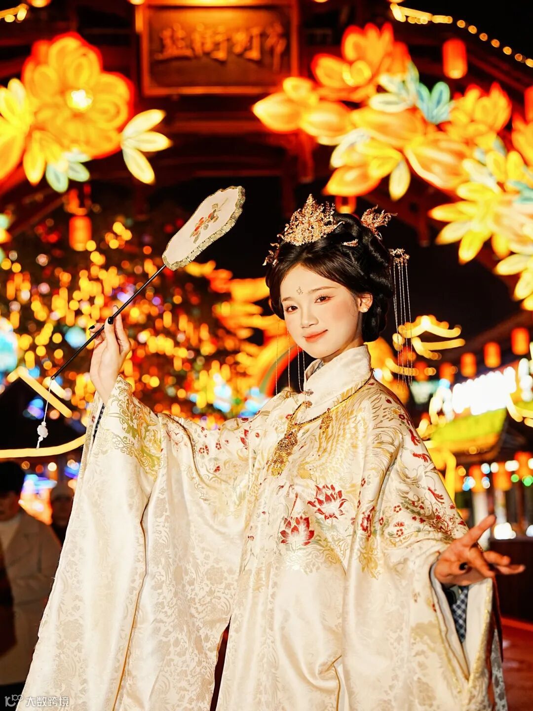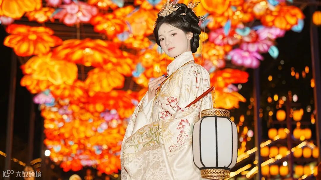 穿一袭汉服,提一盏花灯,在蝶影流光下漫步,在古街转角定格。