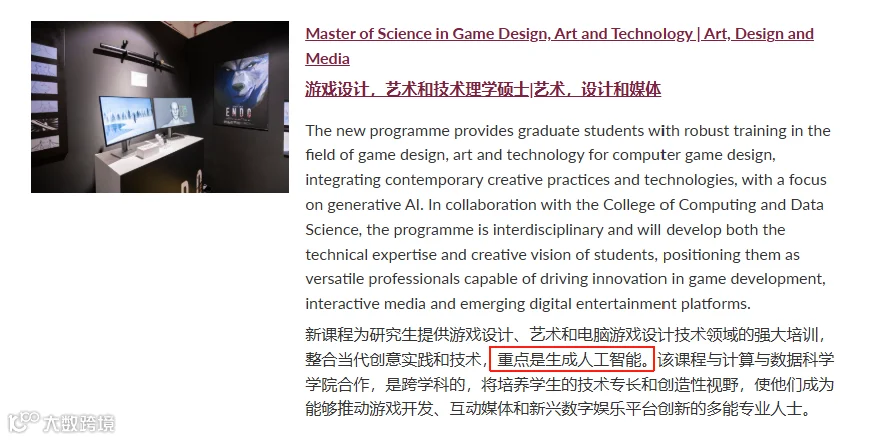 · 新增游戏设计、艺术与科技硕士(Game Design, Art & Tech MSc)