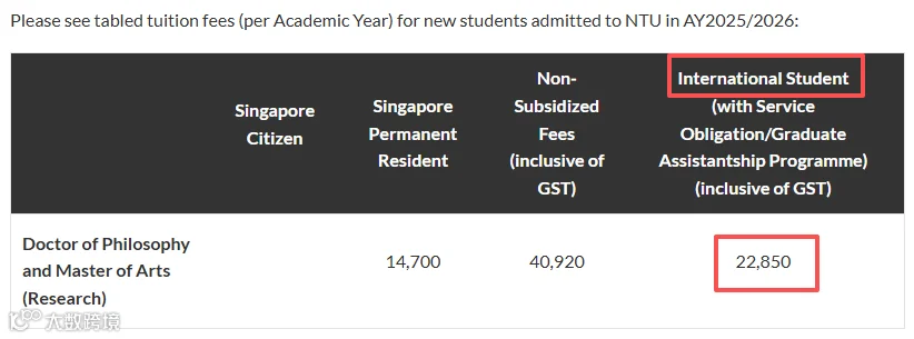 南洋理工ADM专业学费