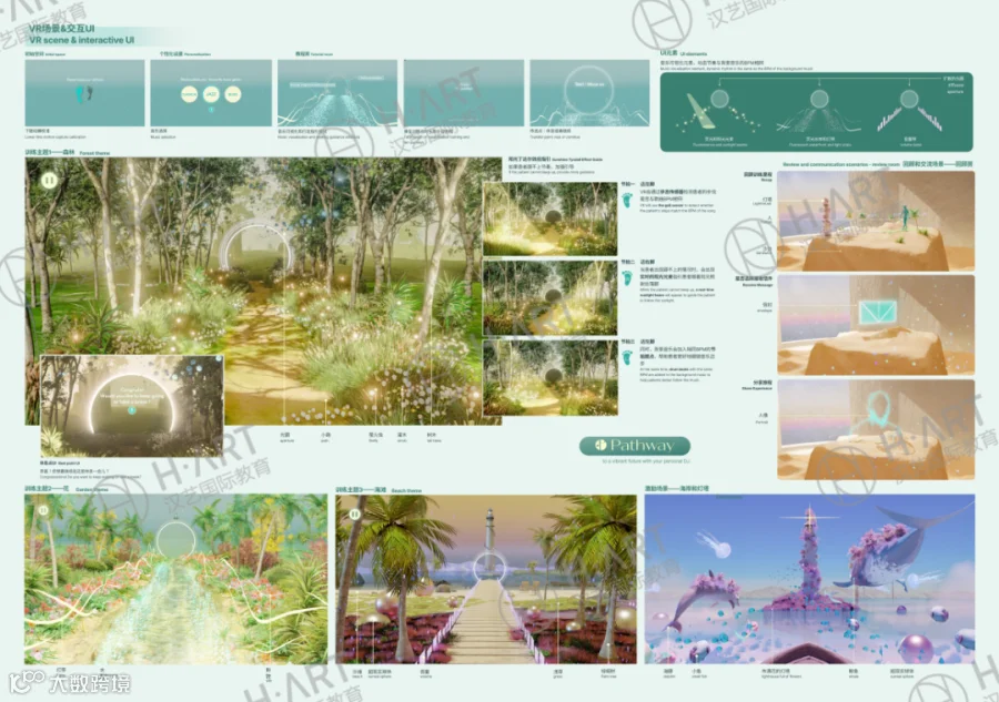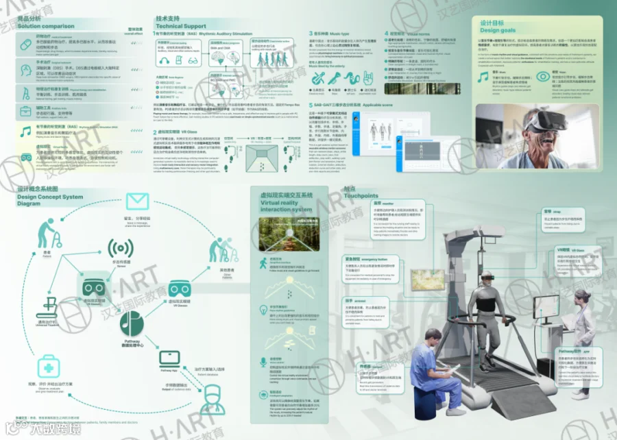 比如汉艺学员Z同学在和小组成员设计一款协助帕金森患者康复的VR严肃游戏时,除了需要展现游戏设计页中,美轮美奂的场景设计、互动模式、关卡模式: