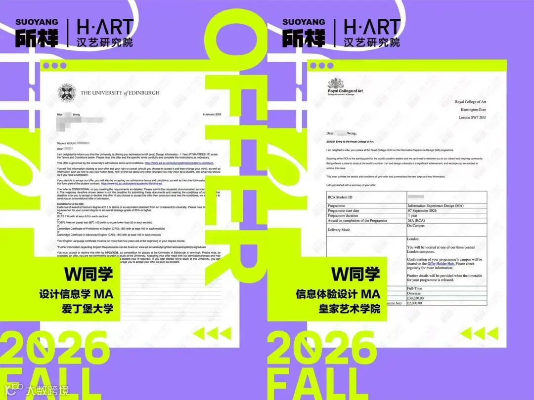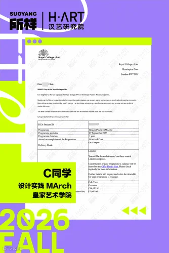 获得皇艺 服务设计 MA、设计未来 MDes等offer