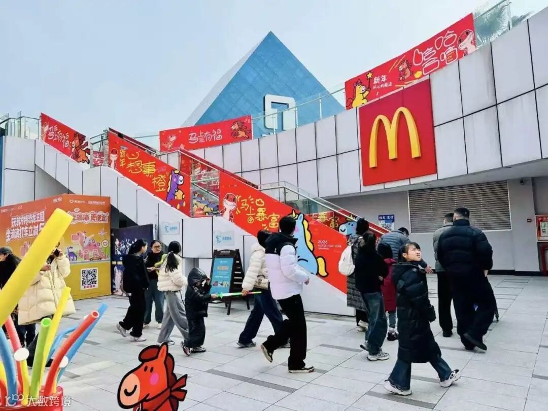 时空·龙门镇新春主题广场旁的「泡泡奇境」成为人气打卡点,按下按钮,漫天彩色泡泡喷涌而出,梦幻氛围拉满。