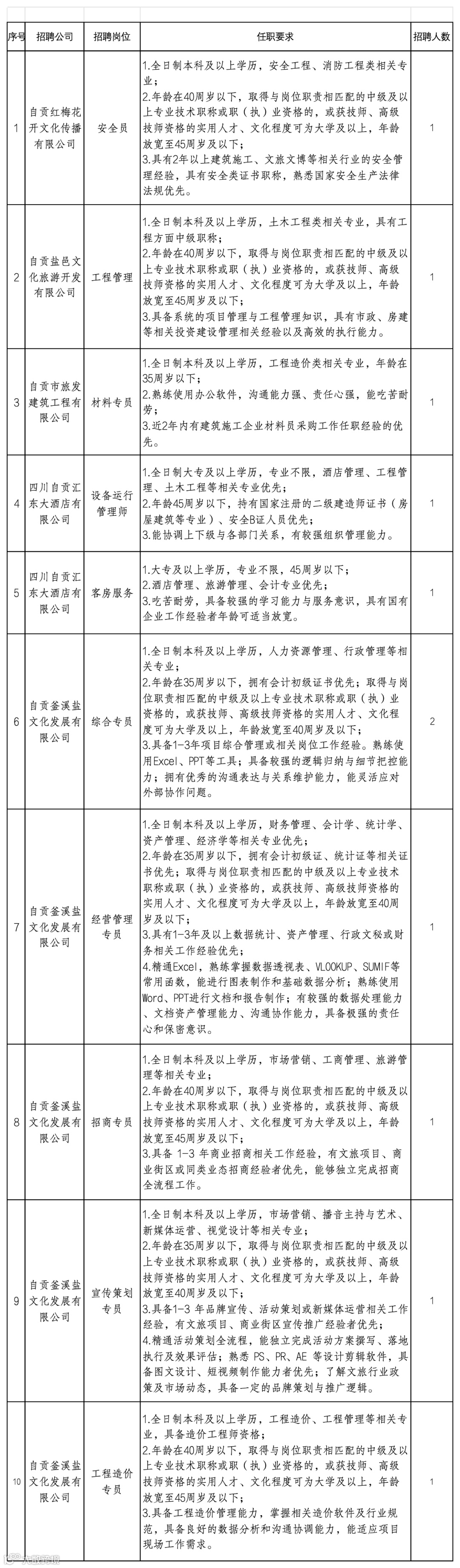 3. 体检标准参照自贡市公务员体检标准执行,体检费用由公司承担。