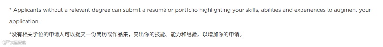 如有跨专业申请的学生,学校也非常乐意接受。导师们会根据大家提交的相关支持文件(作品集、奖项等)、以及相关工作经验酌情考虑。