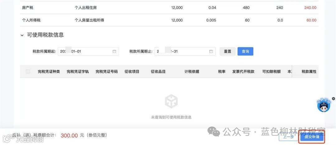 核对【应纳税款信息】,若无误点击【提交申请】