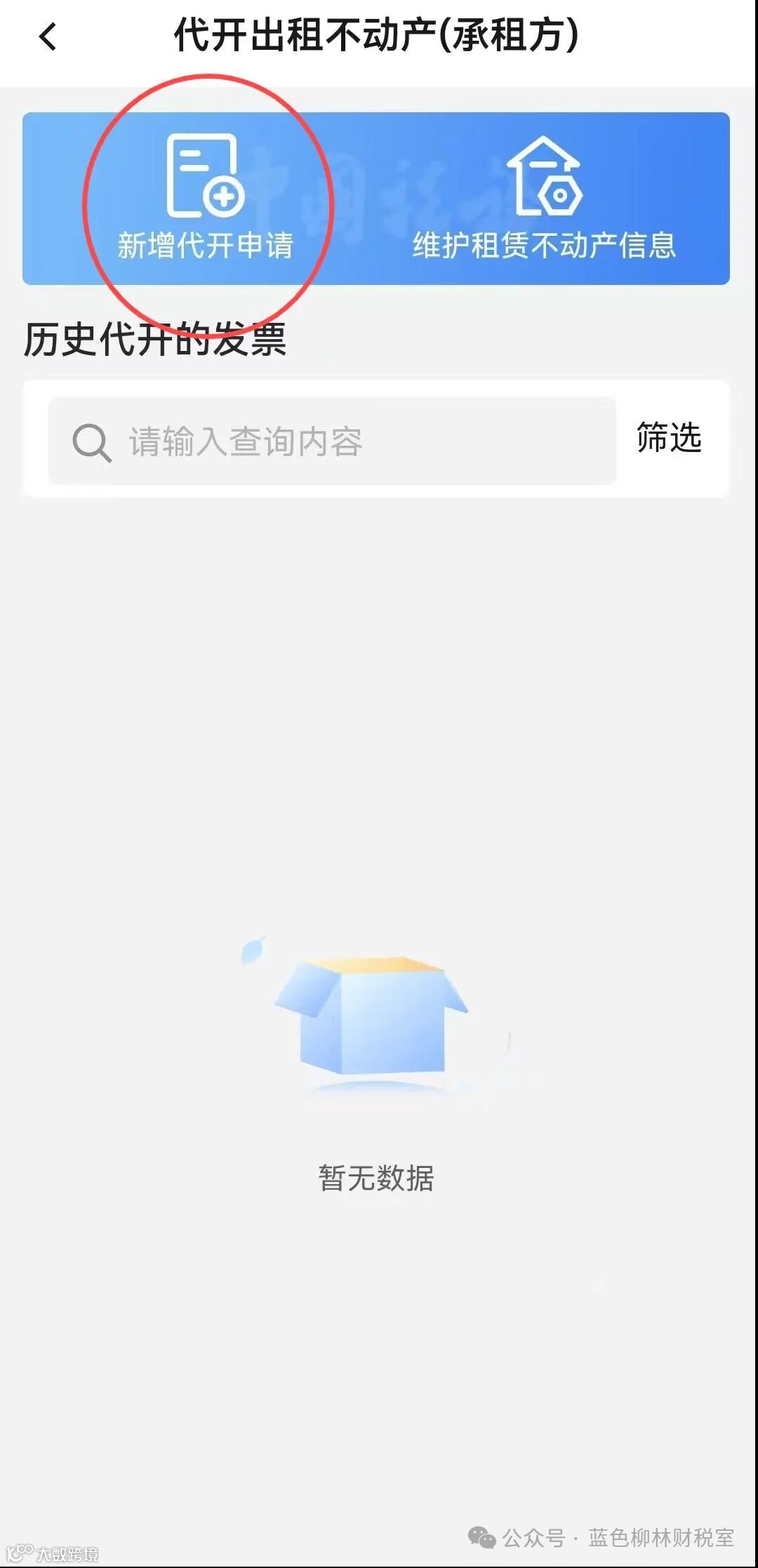 3.点击“新增代开申请”。