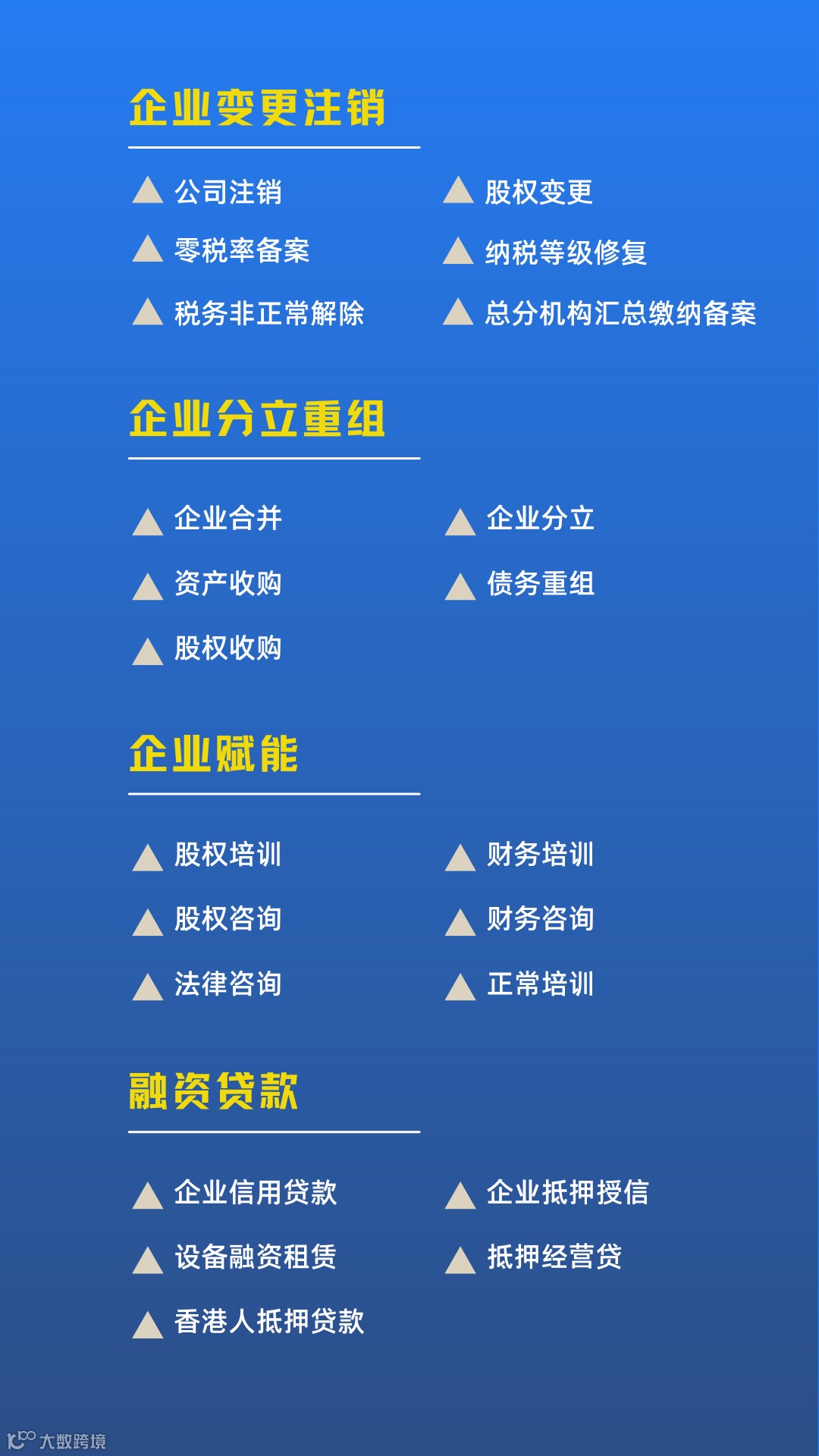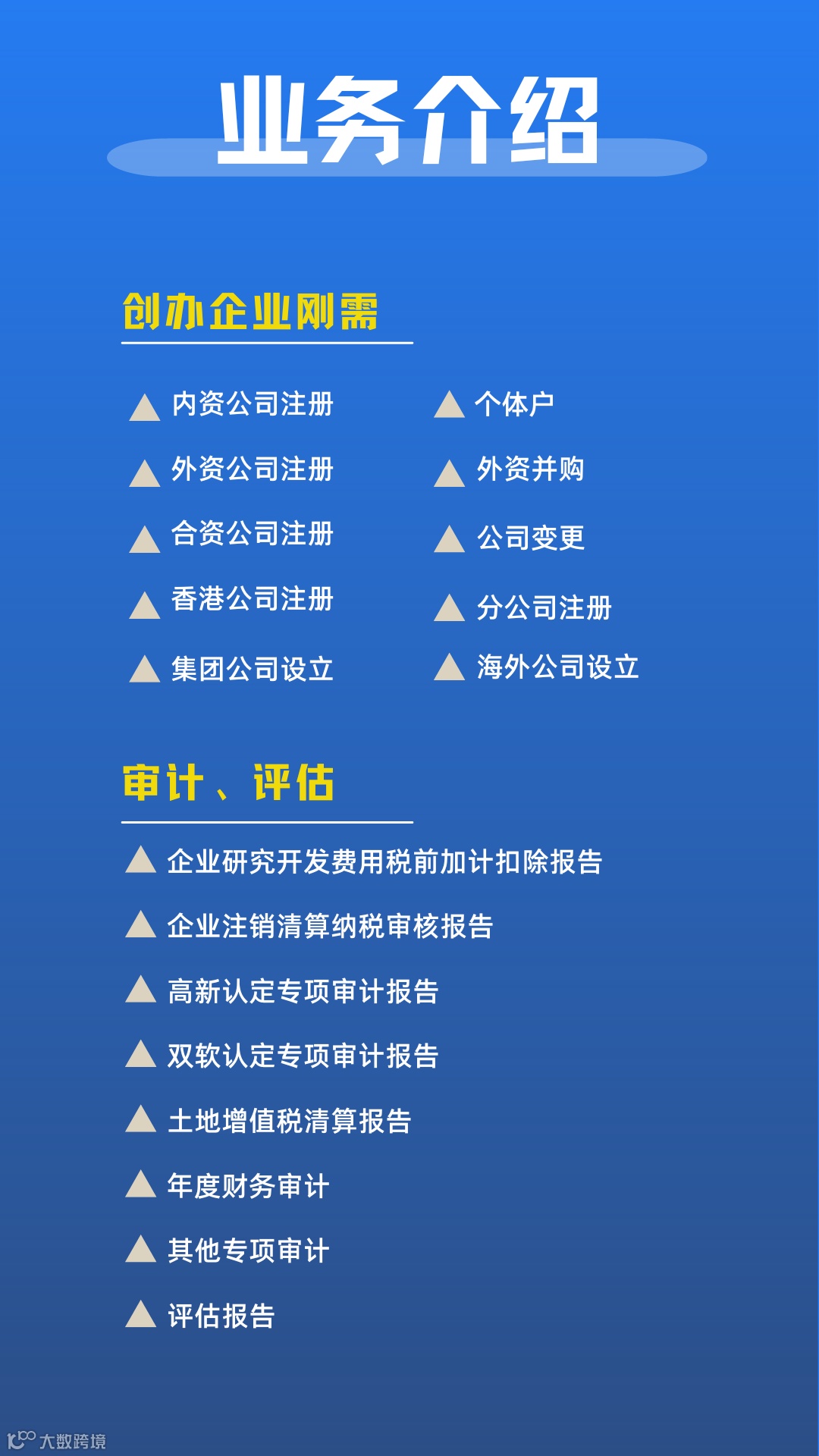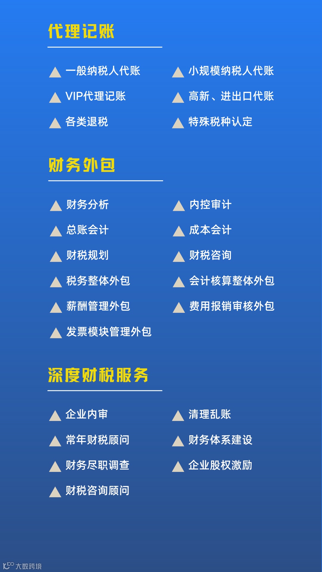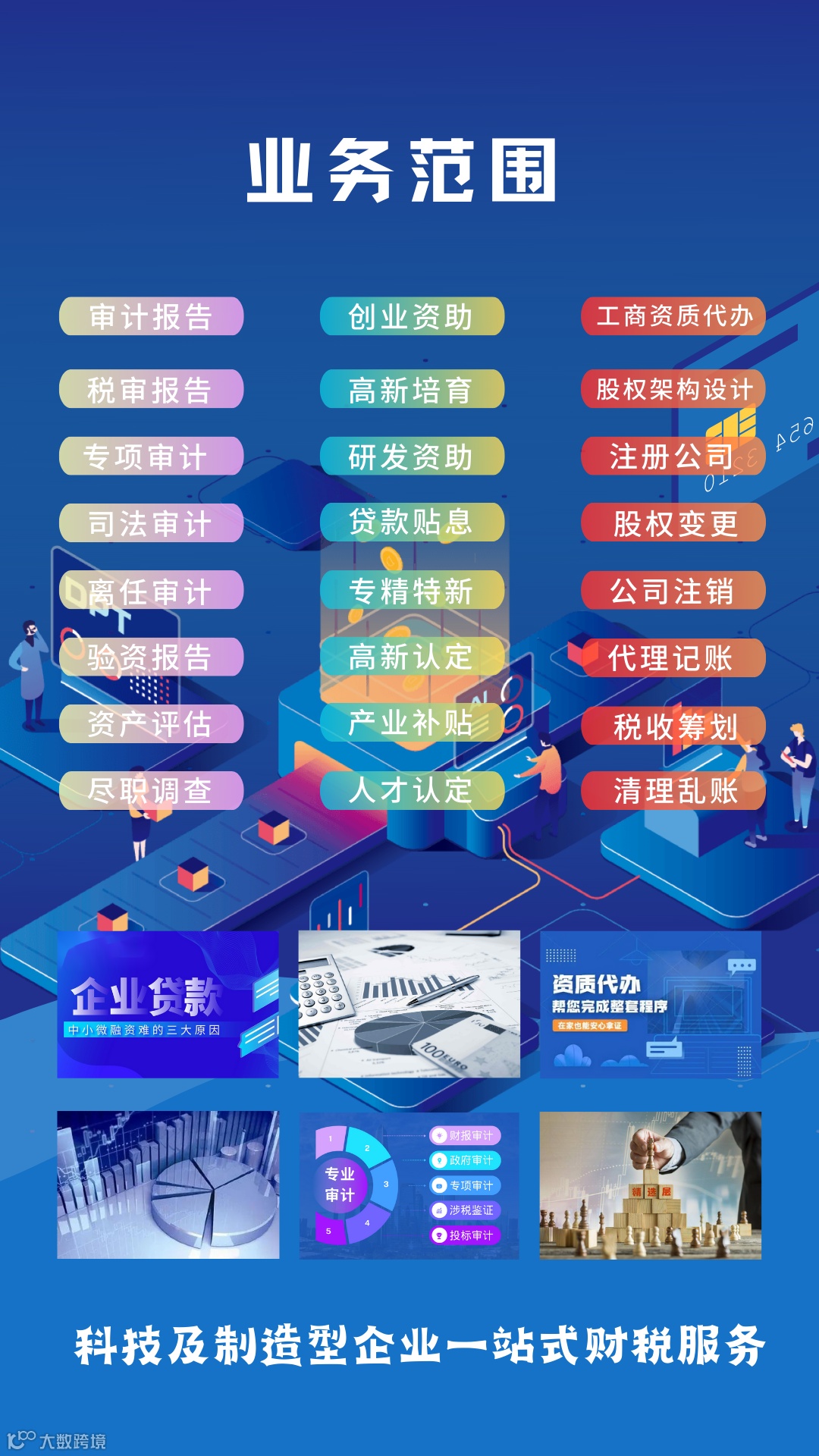 万象财税服务平台致力提供:企业初创(工商财税)、成长(审计税务筹划)、发展(政府项目补贴)的专业解决方案。